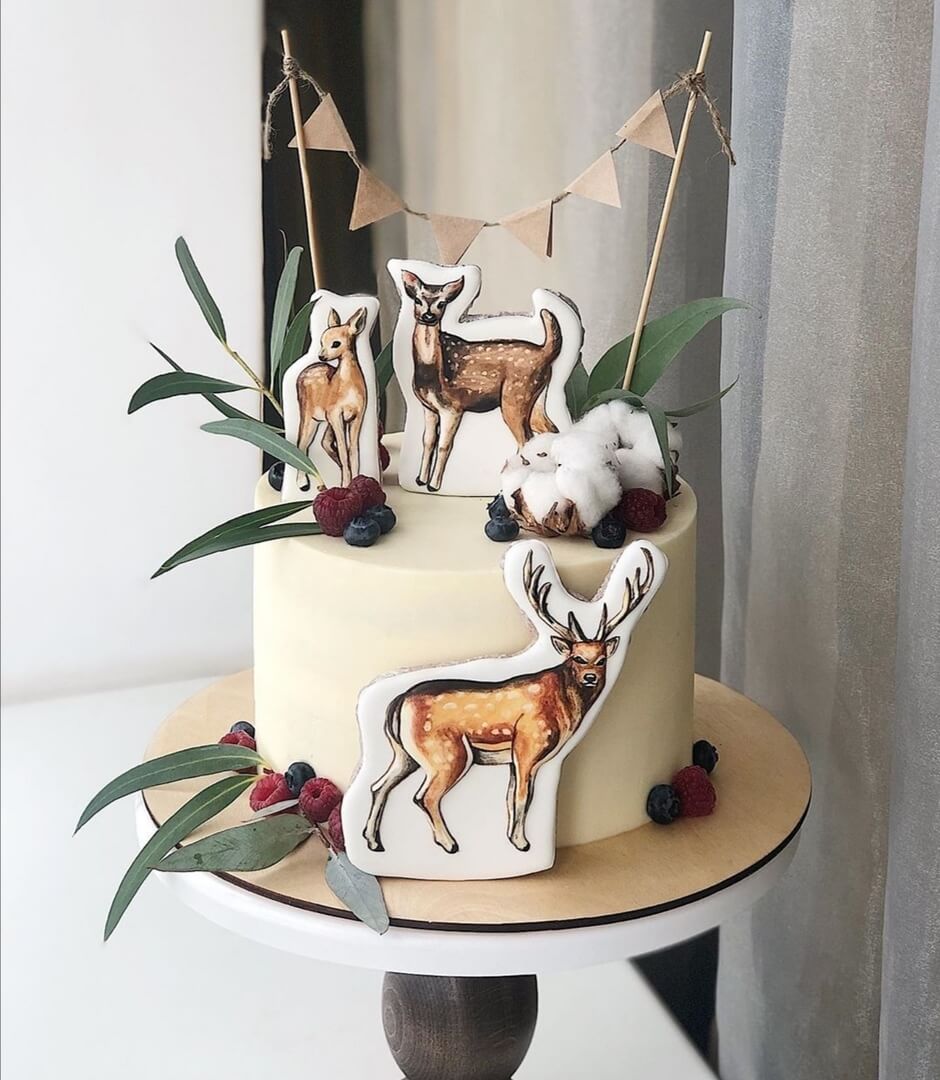 Очаровательная семья оленей на не менее очаровательном и сдержанном тортике для самых вкусных поздравлений