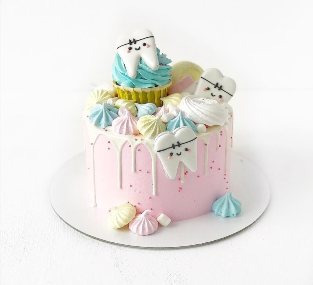 Поводов подарить такой милейший тортик множество - на появление первого зубика, любимому дантисту, будущему стоматологу....