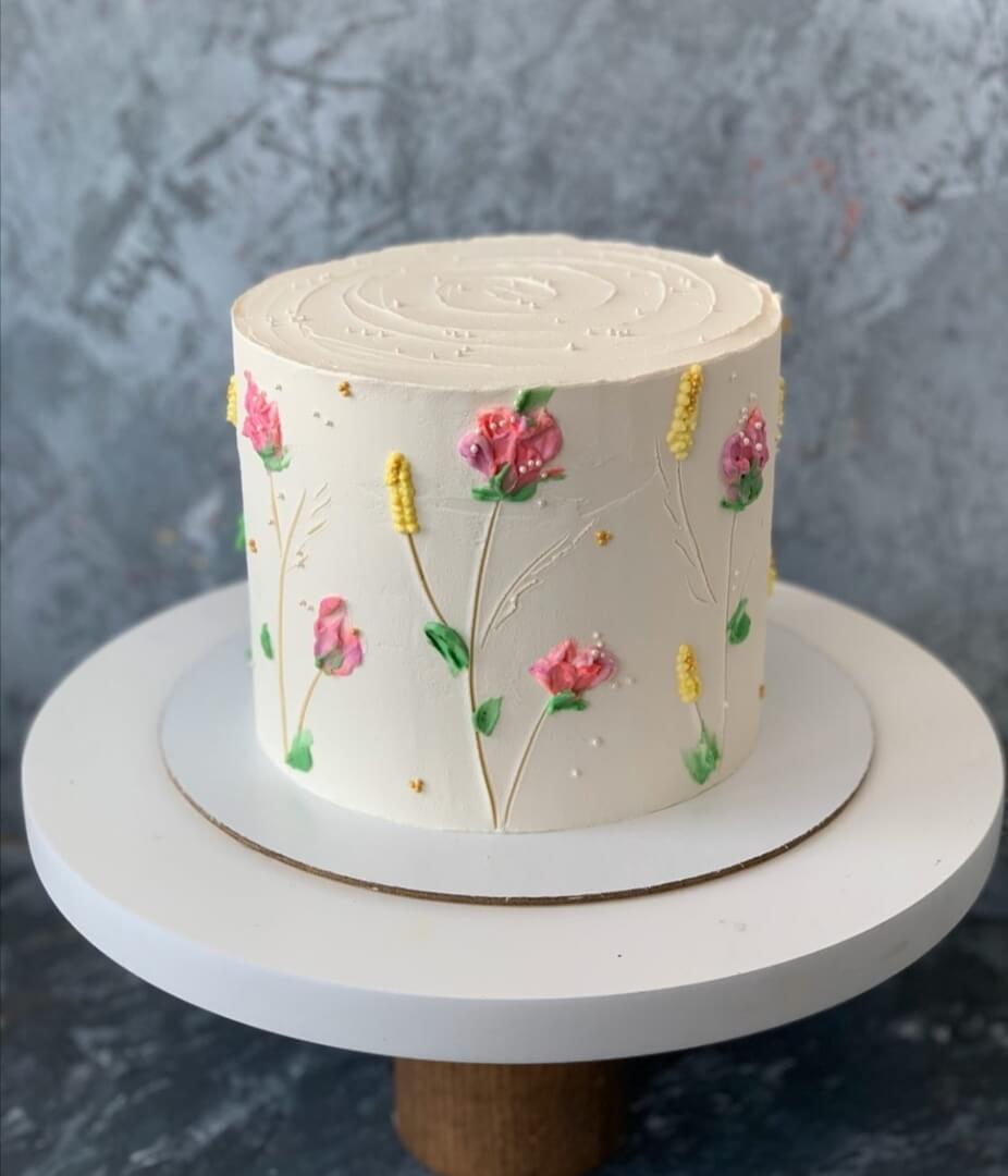 Декор тортика напоминает милые незамысловатые полевые цветы...