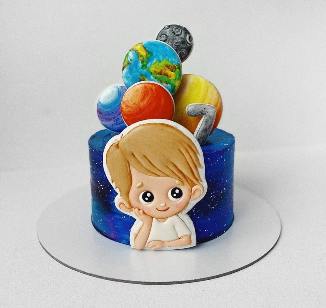 Великий мечтатель, звездочет, а, быть может, ваш малыш - будущий покоритель вселенной? Яркий космический тортик для маленьких астрономов